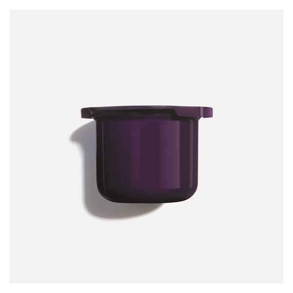 Runder, lila Behälter mit abgerundetem Deckel, auf weißem Hintergrund.