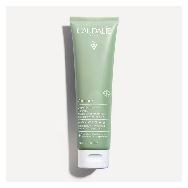 Reinigendes Gel von Caudalie in einer grünen Tube, 150 ml, mit natürlichen Inhaltsstoffen für unreine Haut.