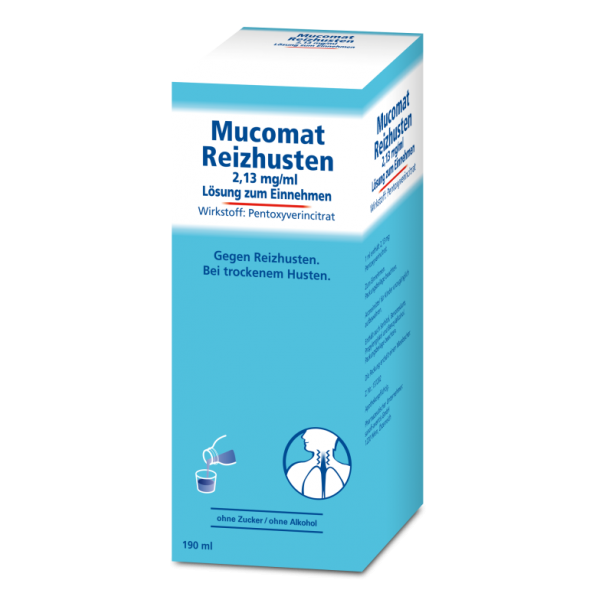 Anwendungsgebiete Mucomat Hustenstiller wird angewendet bei Erwachsenen und Kindern ab 6 Jahren zur symptomatischen Behandlung des Reizhustens.